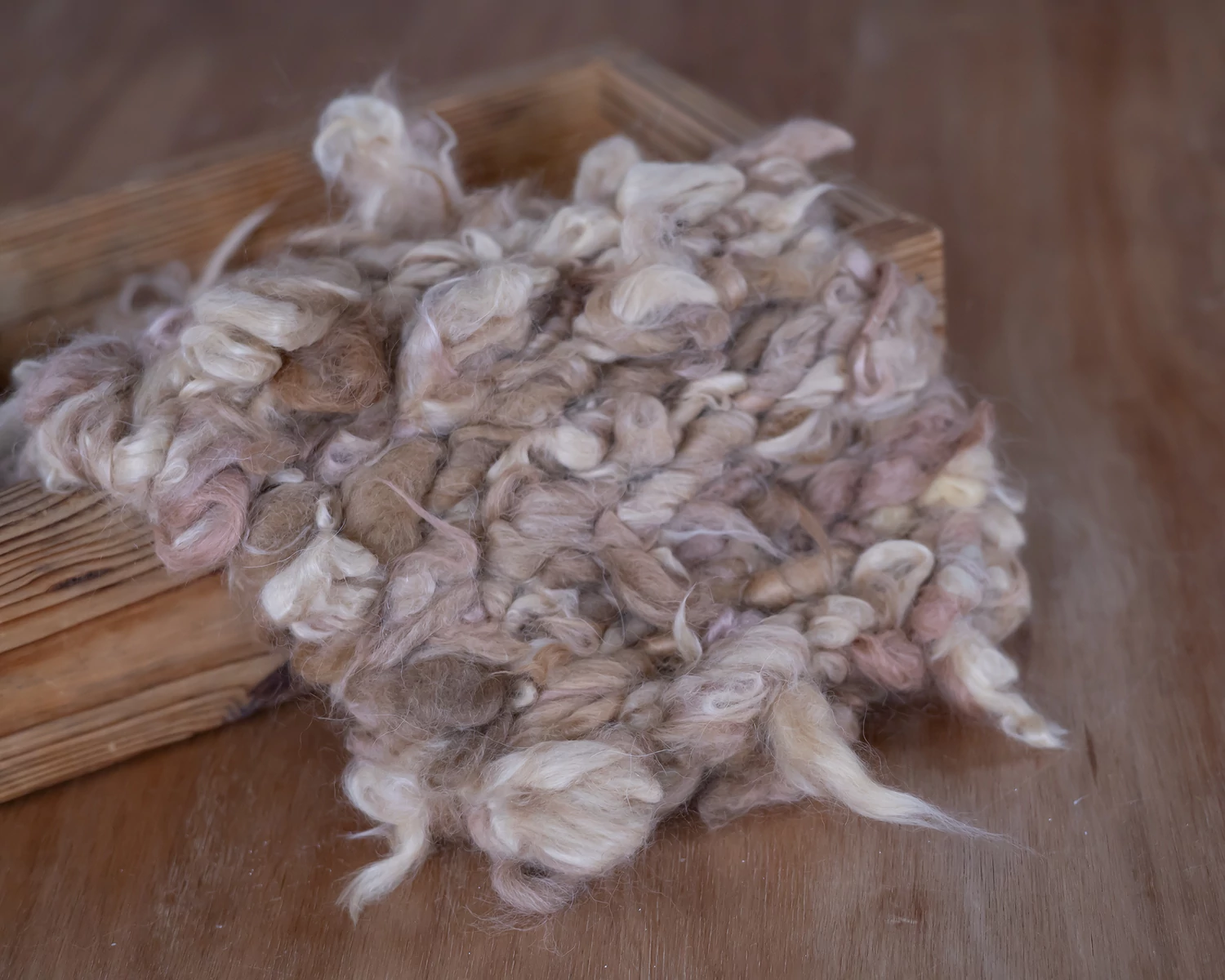 Beige-light brown thick rustic mini wool layer for newborn photography