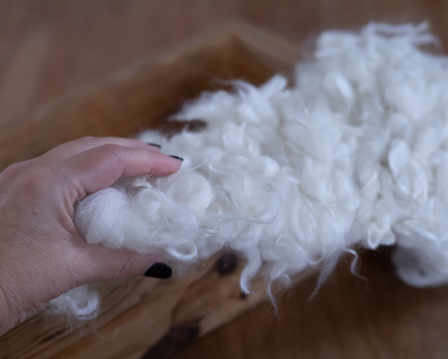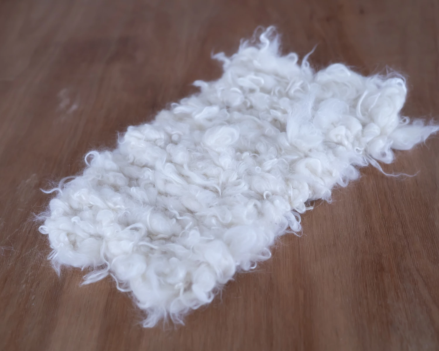 Premium handmade wool layer in off-white. Elegant and versatile, suitable for both baby boys and girls. Creates a clean, natural base for baskets, beds, or lifestyle newborn photography.