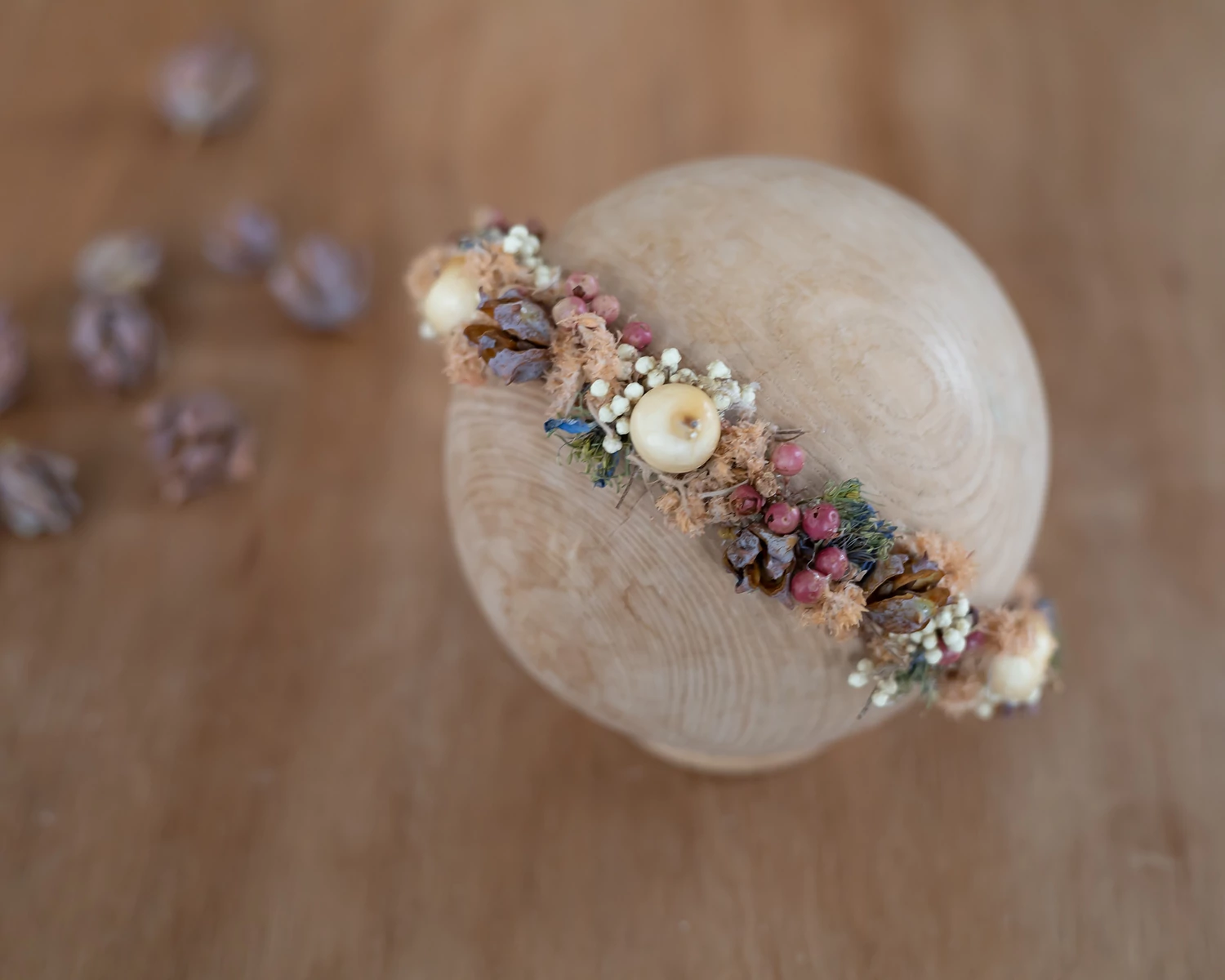 Care: The headband contains delicate dried flowers that may shed slightly, so gentle handling is recommended.