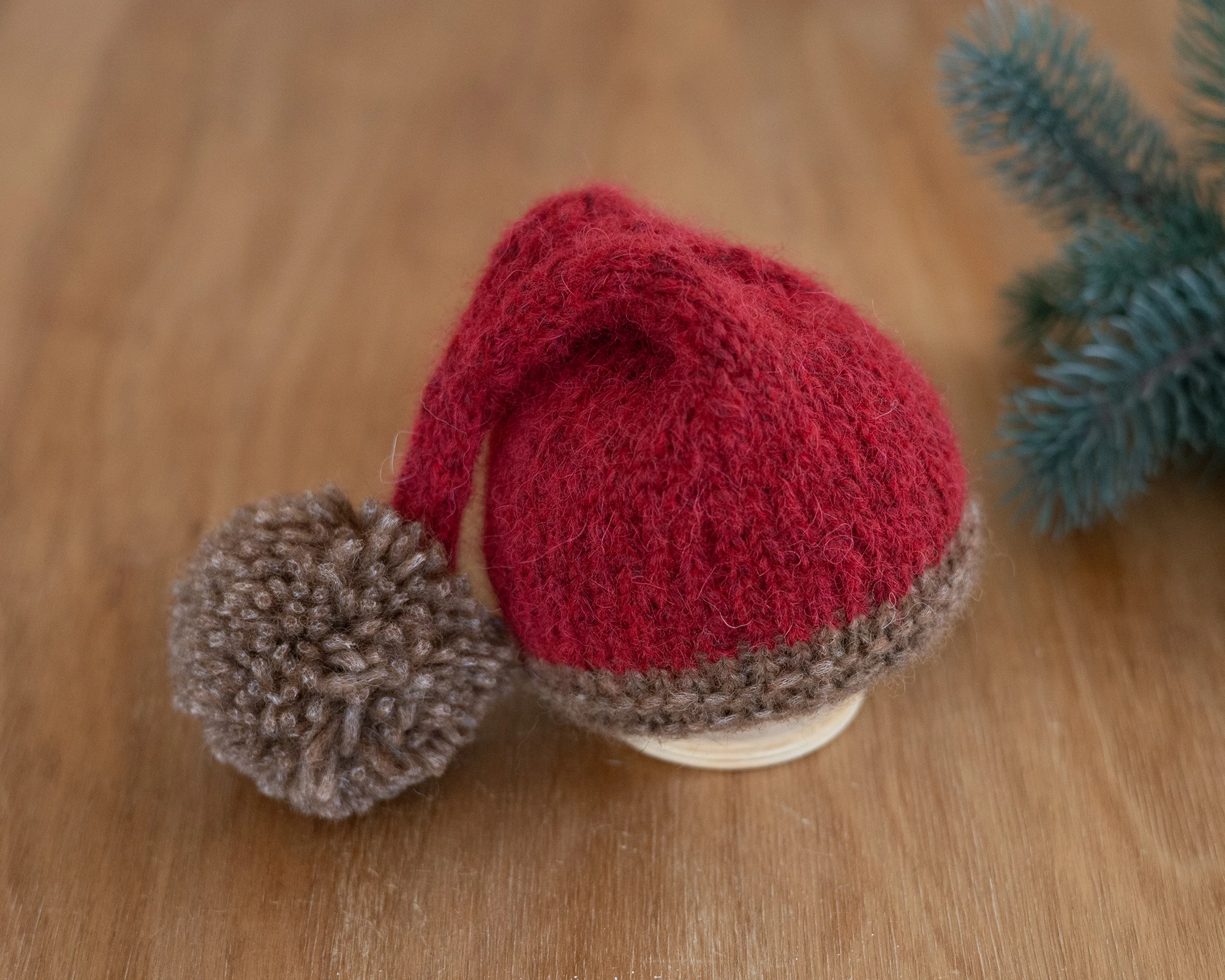 Hand knitted newborn elf / pixie santa hat, made from 100% wool yarn. Perfect for boys and girls. Ready to ship.