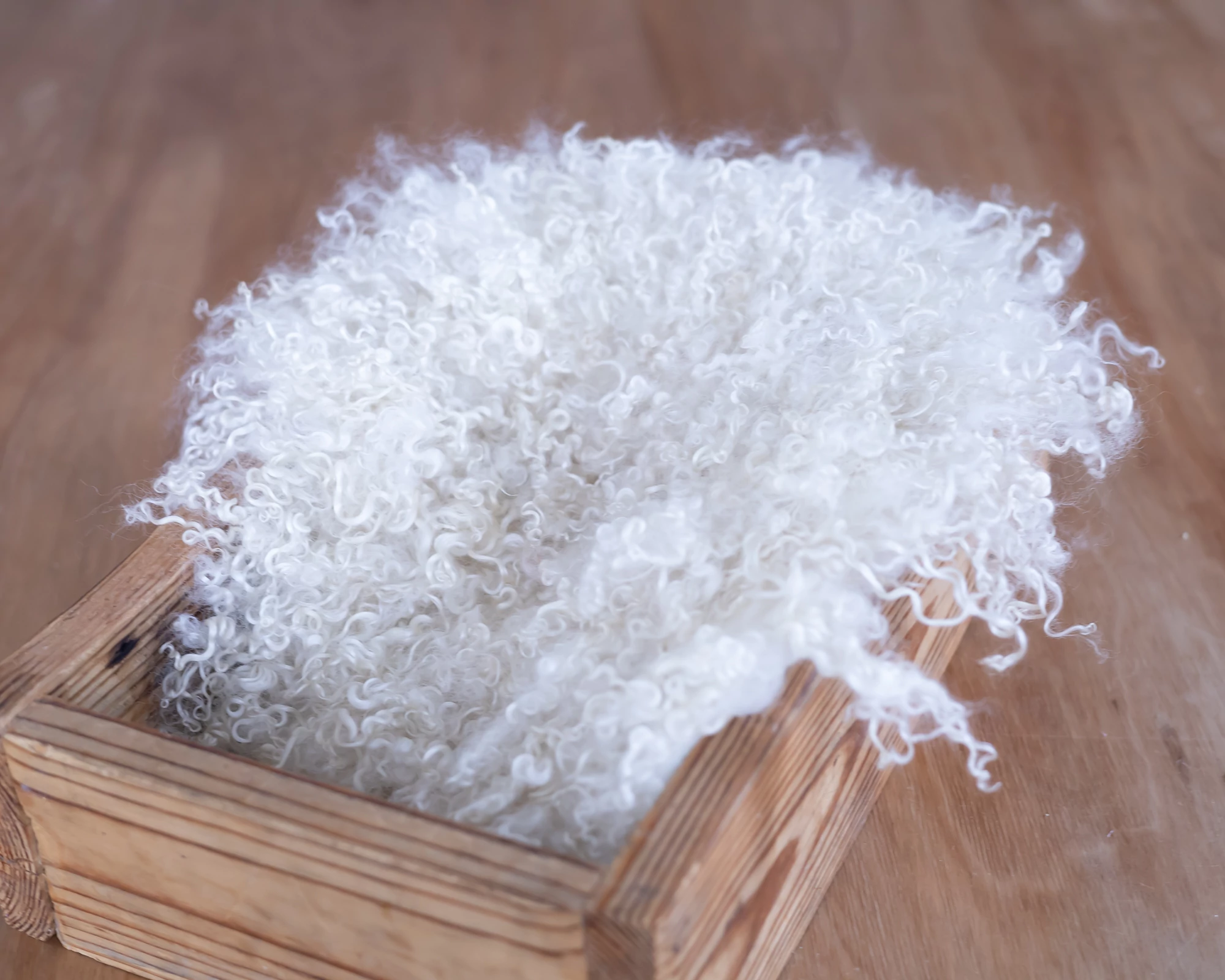 Medium-sized hand-felted curly wool flokati fur for newborn photography.